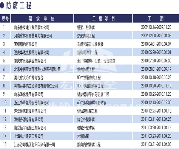 - 資質(zhì)齊全 具有建筑工程施工總承包壹級(jí)資質(zhì)、防水防腐保溫工程專(zhuān)業(yè)承包壹級(jí)資質(zhì),鋼結(jié)構(gòu)專(zhuān)業(yè)承包貳級(jí),公司整體通過(guò)了質(zhì)量管理體系認(rèn)證... 了解詳情